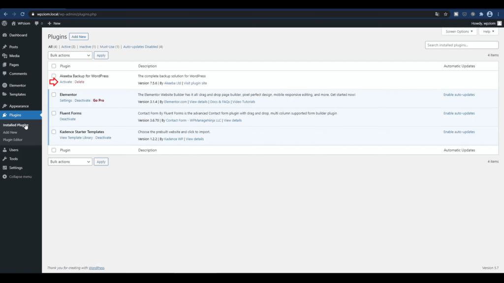 Aktywujemy wtyczkę.