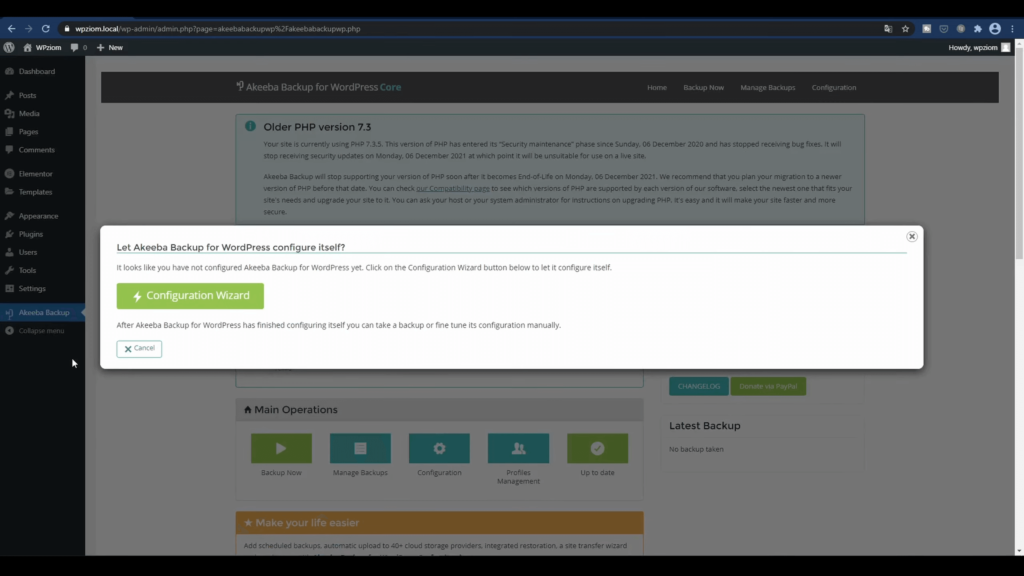 Konfiguracja wtyczki Akeeba Backup