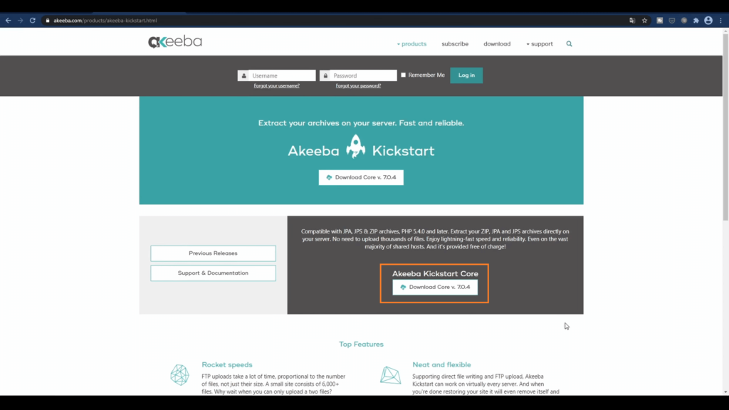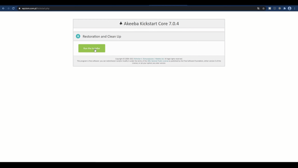 Musimy także ściągnąć plik, który nazywa się „Kickstart”. Wpisujemy w Google: “Akeeba Backup WordPress kikstart“. Klikamy przycisk pobierania.