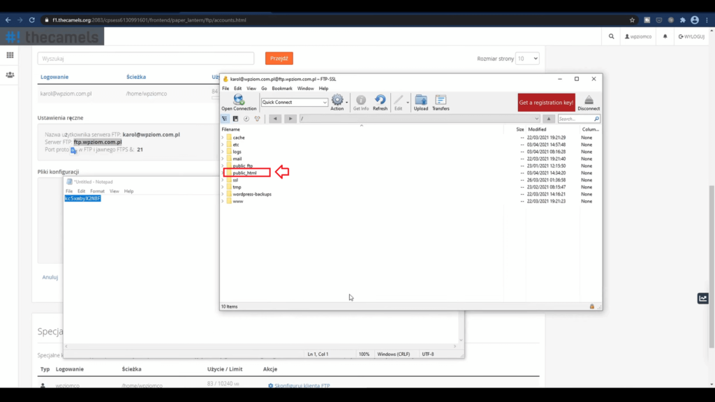 Ważna rzecz – wszystko powinno być w głównym katalogu. W tym miejscu może być też napisane “publichtml” albo “home”. Zmaż wszystko i kliknij “Utwórz konto FTP“.
