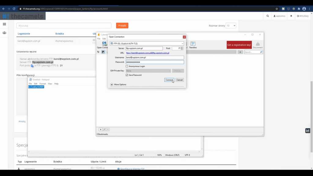 - Ściągamy klienta FTP i konfigurujemy połączenie z serwerem.