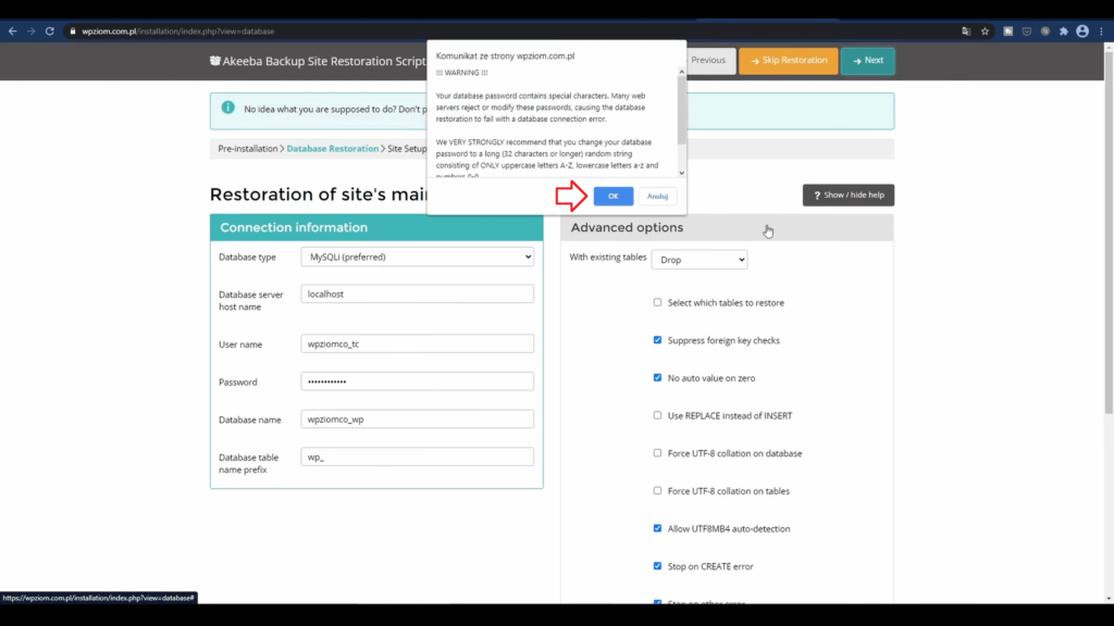 Wszystko się odpaliło. Moglibyśmy to przeskoczyć i zostawić na starej bazie danych natomiast ja, tak jak mówiłem, nie mam pojęcia czy ona ma dobre hasło, czy jest bezpieczna, bo nie wiem, jak się zainstalowało na komputerze, stąd utworzyłem nowe, które wiem, że jest bezpieczne.