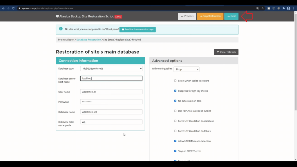 Jeżeli jest inaczej, a wiesz, że wszystko zrobiłeś dobrze, to zapytaj po prostu na supporcie swojego hostingu. W „Database type” zostawiamy, tak jak jest.