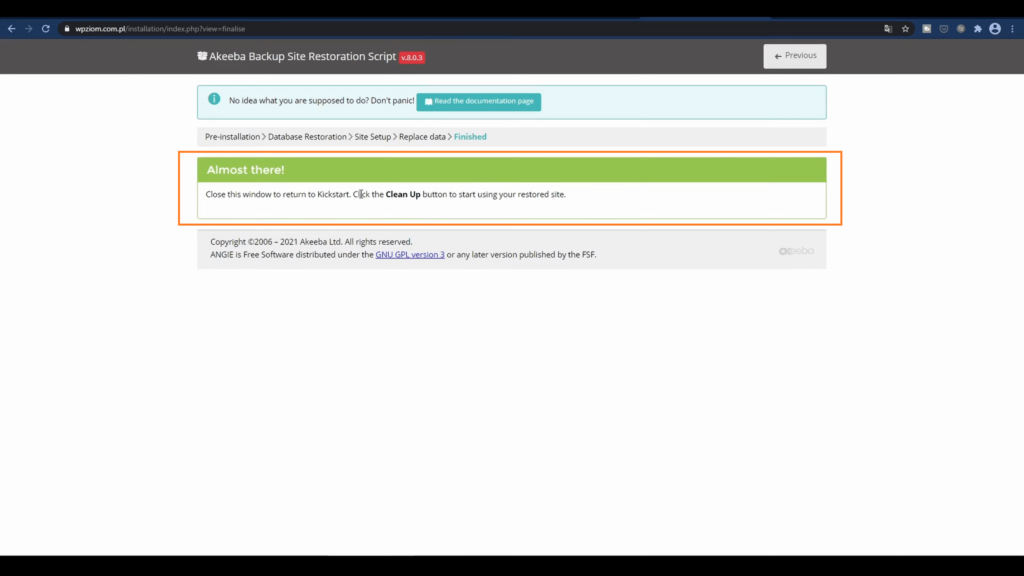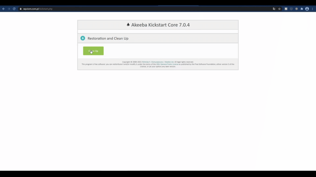 No i dzieje się. Bardzo ważne, żeby wyczyścić to, co pozostało przy instalacji. Więc dlatego to się otworzyło w nowej karcie, bo tu jest „Clean Up” i klikamy.