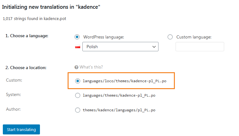 Przede wszystkim na lokalizację pliku z tłumaczeniem. Masz do wyboru Custom, System i Author. Dzięki temu, że zrobisz to w ścieżce Custom, możesz po wszystkim odinstalować Loco Translate – bo tłumaczenia nie będą w plikach wtyczki. Po co odinstalowywać Loco Translate? Chociażby po to, by nie musieć utrzymywać kolejnej wtyczki – a to jest ważne ze względów bezpieczeństwa Twojej strony internetowej.